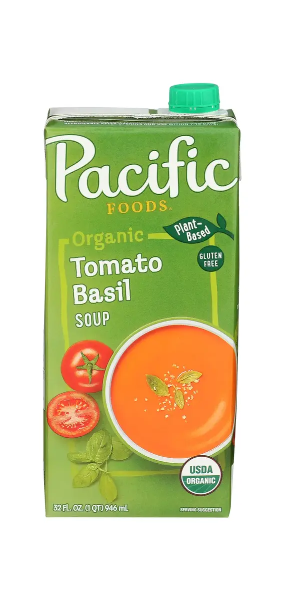 PACIFIC FOODS SOUP IS HARVEST PERFECTION. THIS EXQUISITE VEGAN SOUP BALANCES THE TANGY SWEETNESS OF ORGANIC TOMATOES WITH THE BRIGHT, SAVORY NOTES OF BASIL. A LITTLE GARLIC AND ONION ROUND OUT THE FLAVOR AND ADD DEPTH TO THIS CLASSIC TASTE OF SUMMER. PAIR WITH A SALAD FOR A PERFECT MEAL. INCLUDES ONE 32 FL. OZ. BOX.