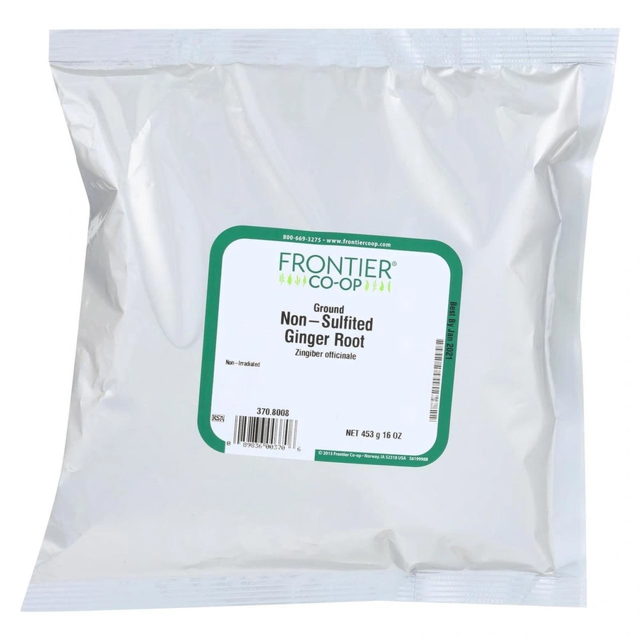 FRONTIER CO-OP NON-SULFITED GROUND GINGER ROOT MAKES ADDING THIS SEASONING TO YOUR DISHES AN EASY TASK. MIX OUR GROUND GINGER INTO BAKED GOODS, CASSEROLES, SAUCES AND MARINADES TO CREATE A LAYER OF FLAVOR. OUR NON-IRRADIATED GINGER STAYS FRESH IN OUR SEALED PACKAGE, SO FEEL FREE TO STOCK UP IF GINGER IS ONE OF YOUR PANTRY STAPLES. THIS 16 OZ. PACKAGE CONTAINS NON-SULFITED GINGER ROOT.