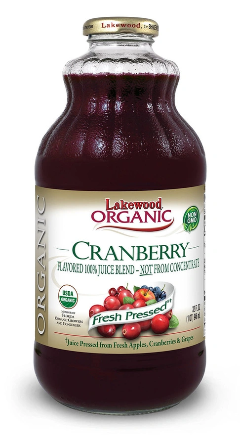 LAKEWOOD ORGANIC CRANBERRY FLAVORED 100% JUICE BLEND IS A DELECTABLE BEVERAGE MADE WITH ORGANIC APPLE JUICE, ORGANIC CRANBERRY JUICE AND ORGANIC CONCORD GRAPE JUICE. THIS 32 FL. OZ. JUICE BLEND HAS NO ADDITIVES, NO PRESERVATIVES AND IS UNSWEETENED WITH 0 G. OF ADDED SUGAR. NATURALLY GLUTEN-FREE, THIS NON-GMO JUICE IS ALSO CASEIN FEE WITH ONLY 120 CALORIES AND 260 MG OF POTASSIUM PER SERVING.