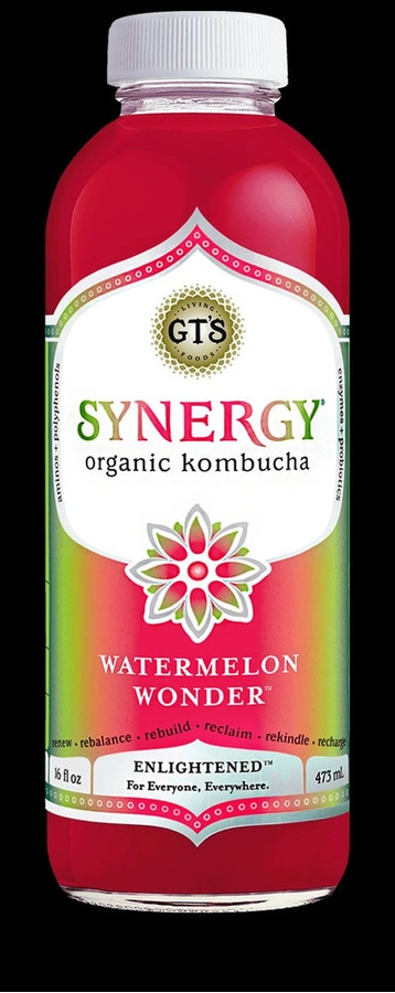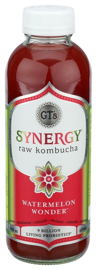 SYNERGY WATERMELON WONDER ORGANIC KOMBUCHA USES A BLEND OF TEAS AND FRUIT JUICES TO CREATE A REFRESHING FLAVOR. RAW, VEGAN, AND MADE WITHOUT GLUTEN OR GMOS, THIS FERMENTED BEVERAGE FITS INTO MOST EATING STYLES. EACH SIP DELIVERS A BURST OF PROBIOTICS AND ENZYMES TO SUPPORT YOUR HEALTHY LIFESTYLE. THIS 16 FL. OZ. BOTTLE CONTAINS 70 CALORIES, SO YOU CAN FEEL GREAT ABOUT YOUR TREAT.