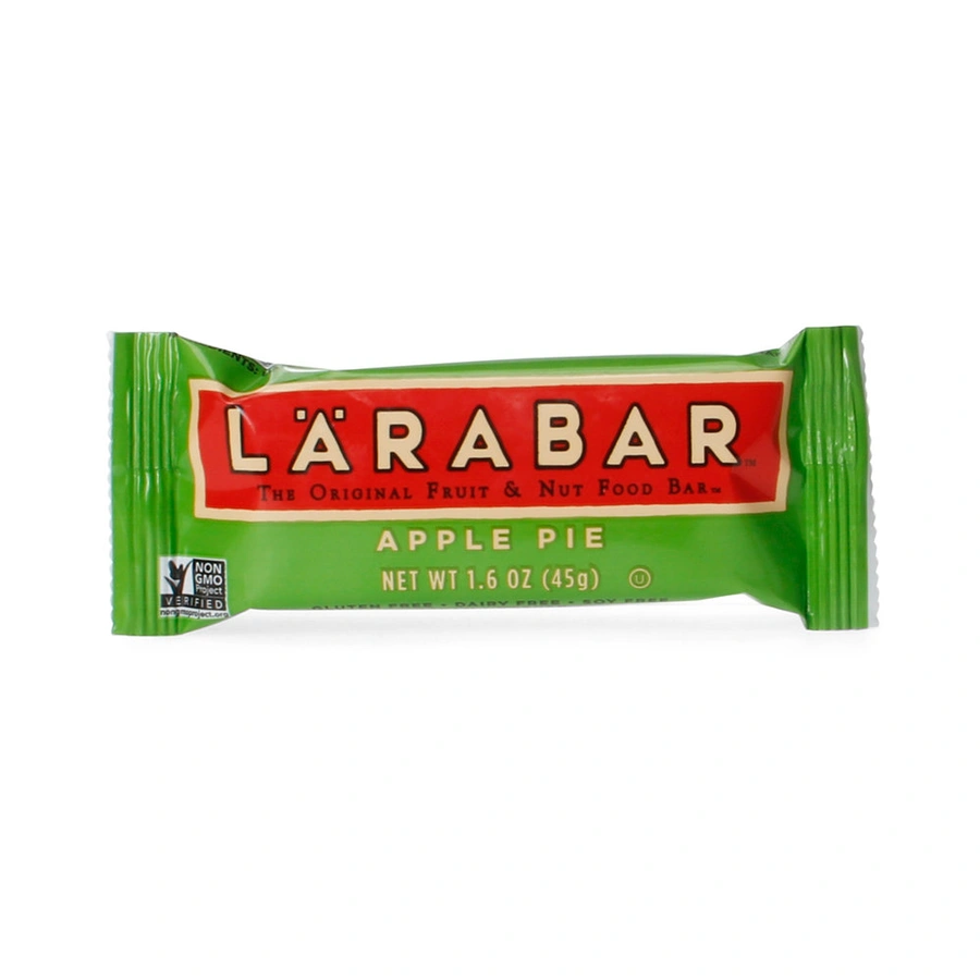 LARABAR'S APPLE PIE BAR IS MADE WITH JUST 6 INGREDIENTS: DATES, ALMONDS, UNSWEETENED APPLES, WALNUTS, RAISINS AND CINNAMON. OUR APPLE PIE BAR CONTAINS A HALF CUP OF FRUIT AND 5 GRAMS OF FIBER. WE USE ORTHODOX UNION KOSHER CERTIFIED, NON-GMO PROJECT VERIFIED, GLUTEN-FREE INGREDIENTS THAT HAVE NO DAIRY, SOY OR CHOLESTEROL. APPLE PIE IS VEGAN FRIENDLY AND DOESN'T HAVE ANY ADDED SUGARS. INCLUDED IS ONE 1.6 OZ. APPLE PIE BAR. SEE NUTRITION FACTS PANEL FOR ALLERGENS.