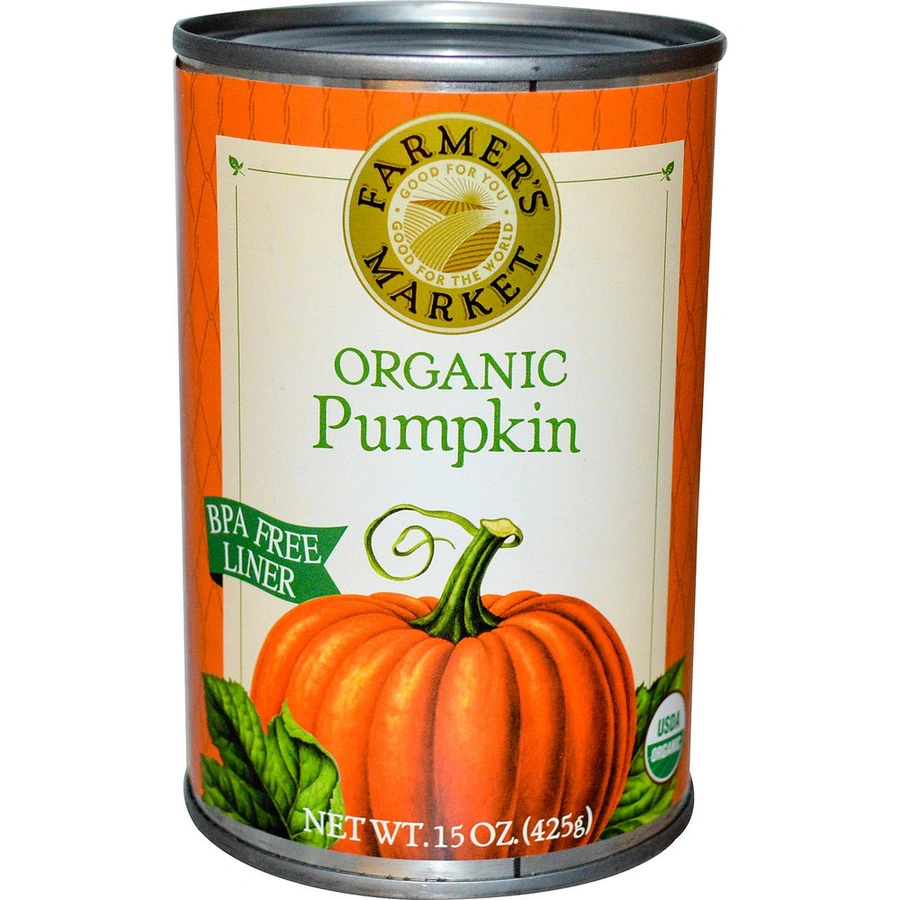 FARMER'S MARKET ORGANIC PUMPKIN IS GREAT FOR BAKED GOODS SUCH AS PUMPKIN PIE, COOKIES, SWEET ROLLS, MUFFINS, BREADS, CAKES AND MORE. WITH ONLY CERTIFIED ORGANIC PUMPKIN, THIS PRODUCT IS KOSHER AND NON-GMO. THE CAN LINER IS ALSO BPA FREE. EACH CAN OF FARMER'S MARKET ORGANIC PUMPKIN CONTAINS 15 OZ. OF PRODUCT.